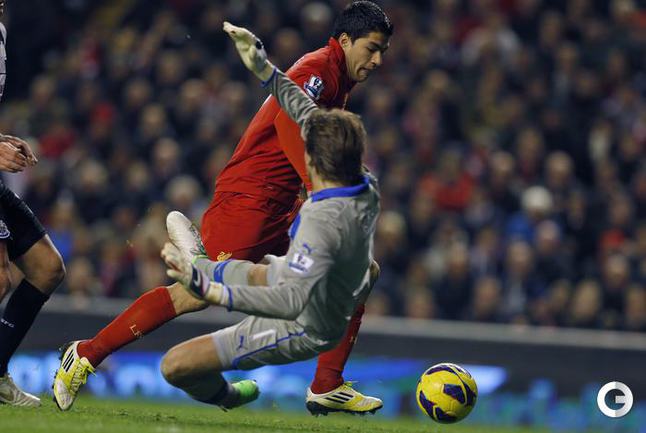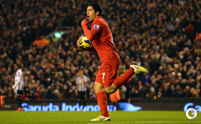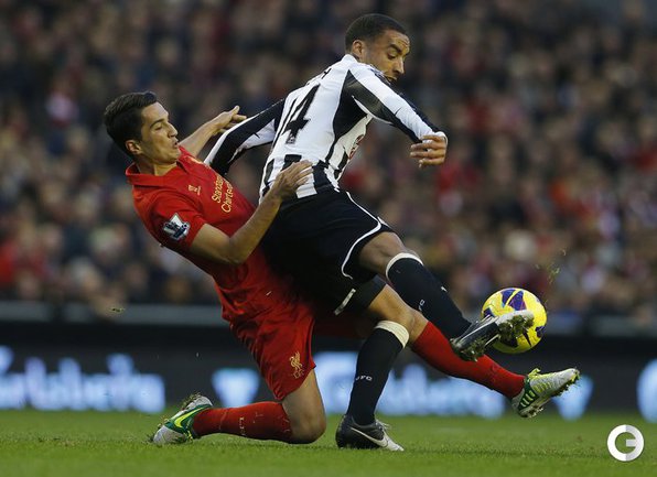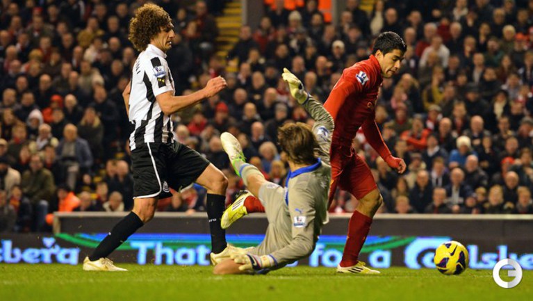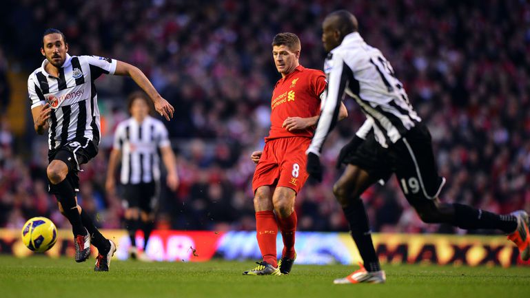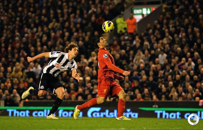 Футбол. Чемпионат Англии. Премьер-лига. 10-й тур. "Ливерпуль" - "Ньюкасл" - 1:1 (0:1). Голы: Кабай, 43 (0:1). Суарес, 67 (1:1). Удаление: Колоччини (Н), 84. Эта игра стала 600-й в форме мерсисайдского клуба для капитана "красных" Стивена Джеррарда. Фото AFP и REUTERS