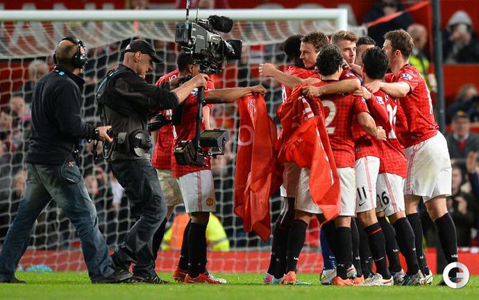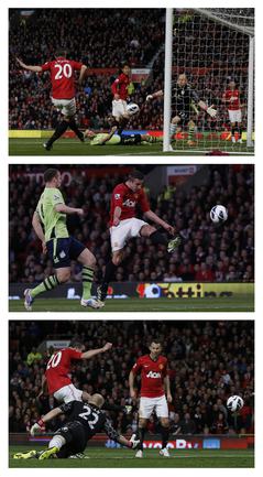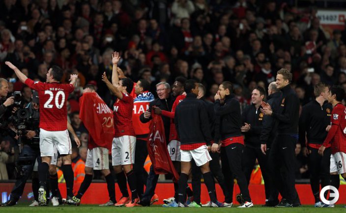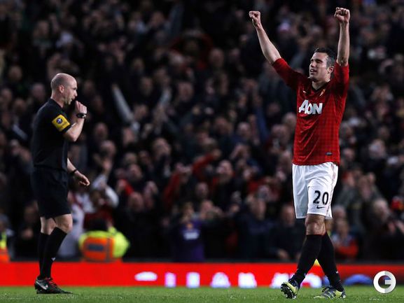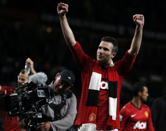 Чемпионат Англии. Премьер-лига. 34-й тур. "Манчестер Юнайтед" – "Астон Вилла" – 3:0. Голы: ван Перси, 2 (1:0). ван Перси, 13 (2:0). ван Перси, 33 (3:0). Клуб из Манчестера оформил тринадцатое чемпионское звание при Алексе Фергюсоне. Фото AFP, REUTERS