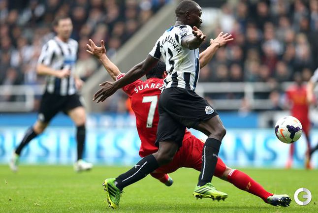 Футбол. Чемпионат Англии. Премьер-лига. 8-й тур. "Ньюкасл" – "Ливерпуль" – 2:2 (1:1). Голы: Кабай, 23 (1:0). Джеррард, 42 - с пенальти (1:1). Дамметт (Кабай), 57 (2:1). Старридж (Суарес), 72 (2:2). Удаление: Янга-Мбива (Ньюкасл Юнайтед), 40. "Красные" возглавляют турнирную таблицу, опережая на одно очко "Арсенал", который сегодня сыграет с "Норвичем". Фото AFP и REUTERS
