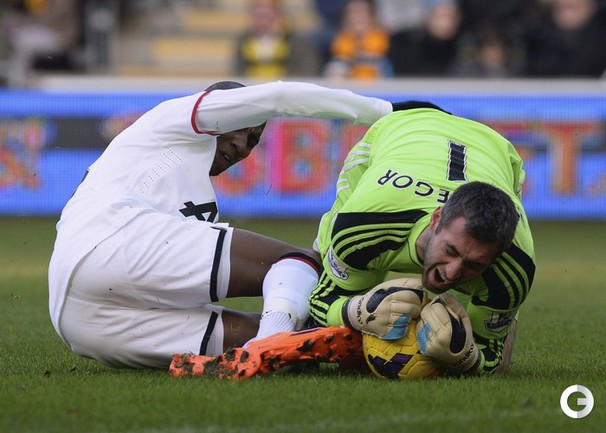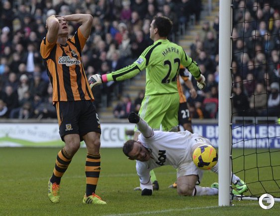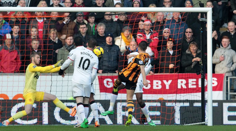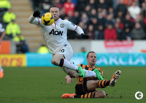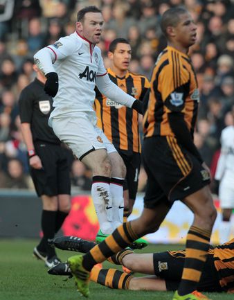 Футбол. Чемпионат Англии. Премьер-лига. 17-й тур. "Халл Сити" – "Манчестер Юнайтед" – 2:3 (2:2). Голы: Честер, 4 (1:0). Мейлер, 13 (2:0). Смоллинг, 19 (2:1). Руни, 26 (2:2). Честер, 66 – в свои ворота (2:3). Удаление: Валенсия, 90. Нападающий "Манчестер Юнайтед" Уэйн Руни на 26-й минуте матча 18-го тура чемпионата Англии с "Халл Сити" сравнял счет в матче (2:2). Этот гол стал для 28-летнего англичанина 150-м в составе манкунианцев в премьер-лиге. Фото AFP и REUTERS
