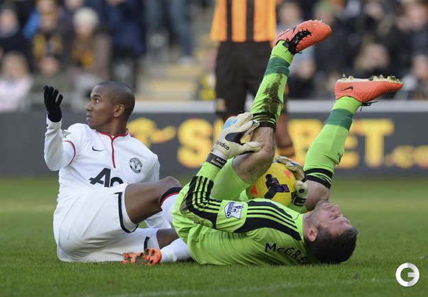 Чемпионат Англии. Премьер-лига. 18-й тур. "Халл Сити" – "Манчестер Юнайтед" – 2:3 (2:2). Голы: Честер, 4 (1:0). Мейлер, 13 (2:0). Смоллинг, 19 (2:1). Руни, 26 (2:2). Честер, 66 – в свои ворота (2:3). Фото REUTERS, AFP