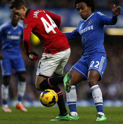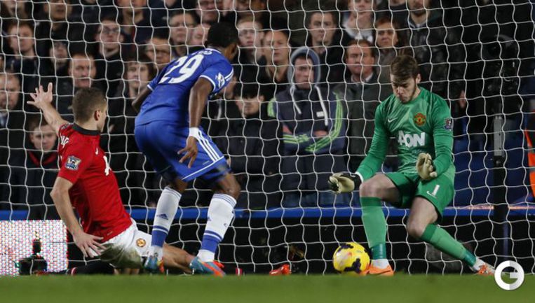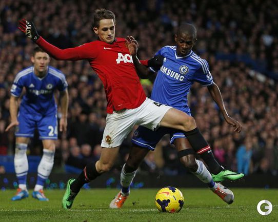Футбол. Чемпионат Англии. Премьер-лига. 22-й тур. "Челси" – "Манчестер Юнайтед" – 3:1 (2:0). Голы: Это`О, 17 (1:0). Это`О, 45 (2:0). Это`О, 49 (3:0). Эрнандес, 78 (3:1). Удаление: Видич, 90+1. Фото AFP