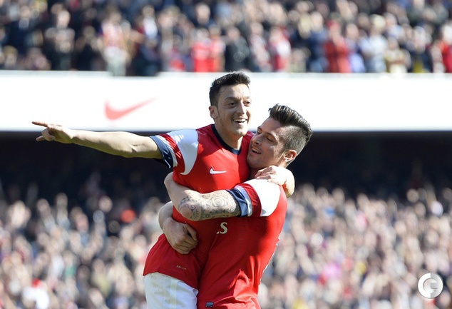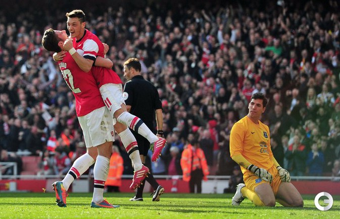 "Арсенал" на своем поле в матче 1/4 финала Кубка Англии разгромил "Эвертон" со счетом 4:1. Дублем в составе лондонской команды на последних минутах отметился Оливье Жиру, еще по голу забили Месут Езил и Микель Артета. Фото AFP, REUTERS