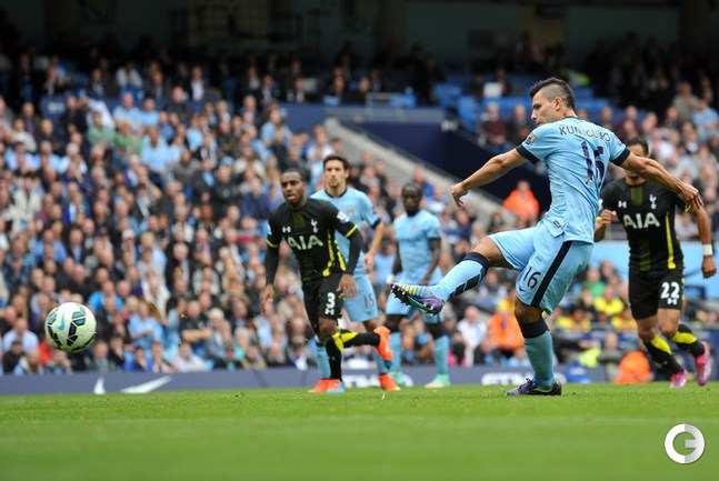 "Манчестер Сити" в матче 8-го тура чемпионата Англии разгромил на своем поле "Тоттенхэм" со счетом 4:1. "Манчестер Сити" – "Тоттенхэм" – 4:1. Голы: Агуэро, 13 (1:0). Эриксен, 15 (1:1). Агуэро, 20 – с пенальти (2:1). Агуэро, 68 – с пенальти (3:1). Агуэро, 75 (4:1). Нереализованные пенальти: Агуэро, 32 (вратарь), Сольдадо, 62 (вратарь). Серхио Агуэро стал лучшим бомбардиром клуба в истории премьер-лиги. AFP, REUTERS