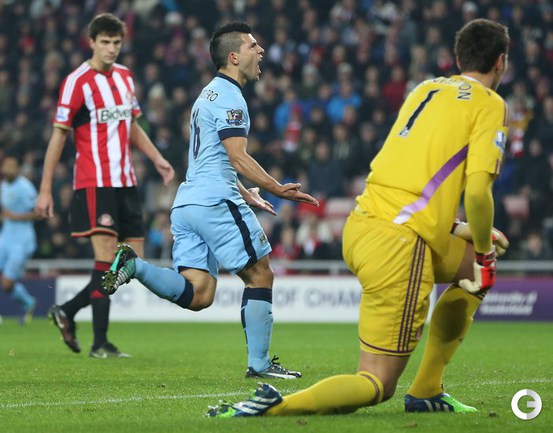 Чемпионат Англии. Премьер-лига. 14-й тур. "Сандерленд" – "Манчестер Сити" – 1:4 (1:2). Голы: Уикхэм, 19 (1:0). Агуэро, 21 (1:1). Йоветич, 39 (1:2). Сабалета, 55 (1:3). Агуэро, 71 (1:4). Фото AFP, REUTERS