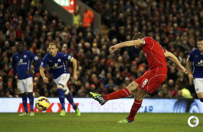 Чемпионат Англии. Премьер-лига. 20-й тур. "Ливерпуль" - "Лестер" - 2:2 (2:0). Голы: Джеррард, 17 - с пенальти (1:0). Джеррард, 40 - с пенальти (2:0). Ньюджент, 58 (2:1). Шлупп, 60 (2:2). Фото AFP, REUTERS