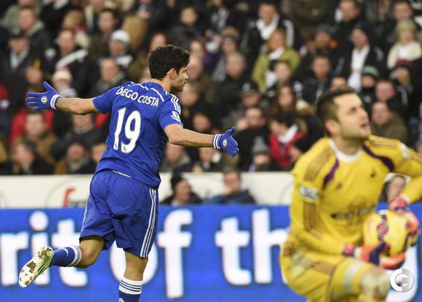 Чемпионат Англии. Премьер-лига. 22-й тур. "Суонси" – "Челси" – 0:5 (0:4). Голы: Оскар, 1 (0:1). Диегу Коста, 20 (0:2). Диегу Коста, 34 (0:3). Оскар, 36 (0:4). Шюррле, 79 (0:5). Фото AFP, REUTERS