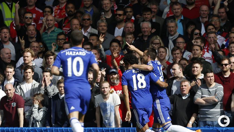 Чемпионат Англии. Премьер-лига. 36-й тур. "Челси" - "Ливерпуль" - 1:1 (1:1). Голы: Терри, 5 (1:0). Джеррард, 44 (1:1). Напомним, что "Челси" досрочно стал чемпионом Англии. "Ливерпуль" после этого поединка набрал 62 очка и лишился шансов на попадание в Лигу чемпионов. Фото AFP, REUTERS