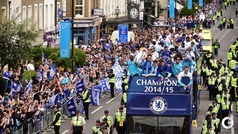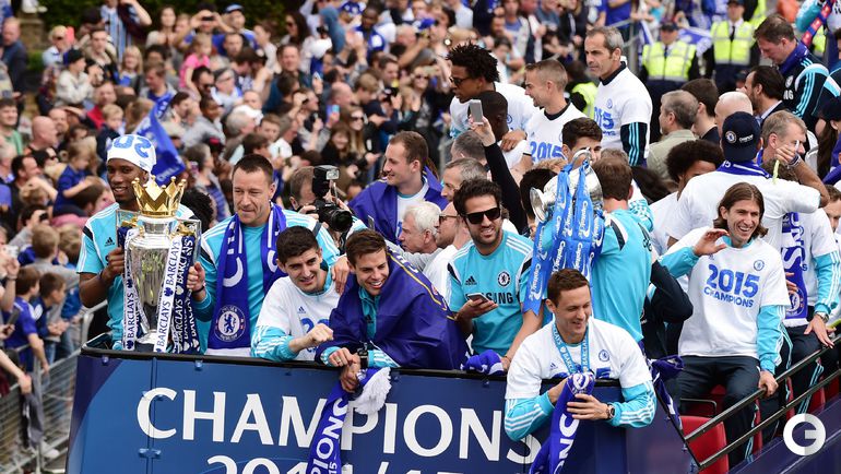 Игроки и тренеры "Челси" после победы в чемпионате Англии прокатились на праздничном автобусе c трофеем по улицам Лондона. Фото AFP