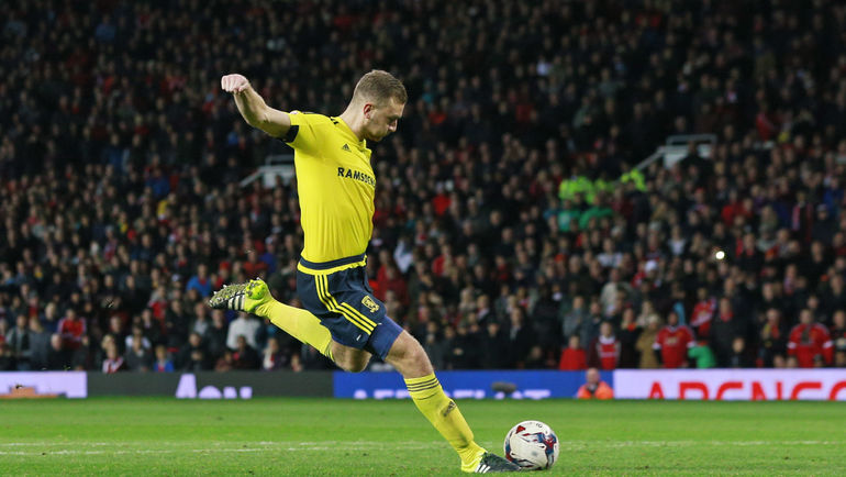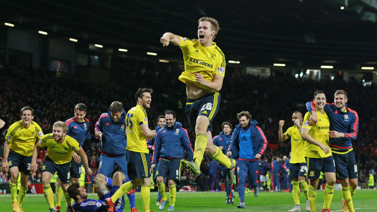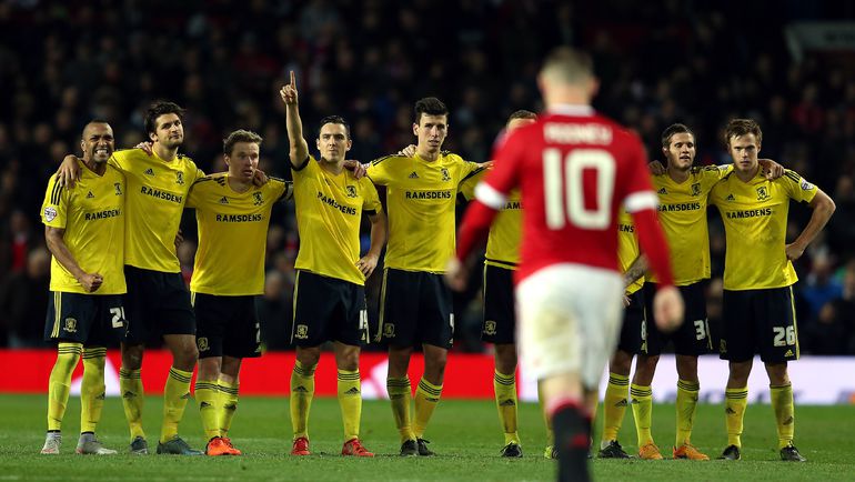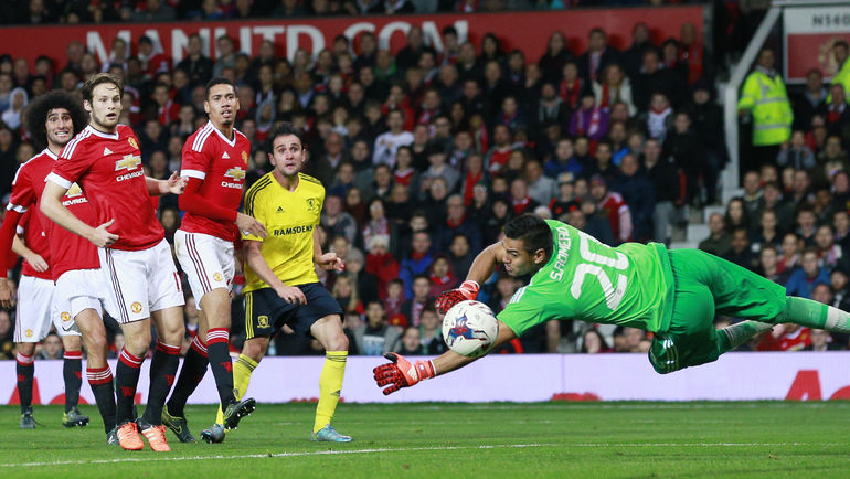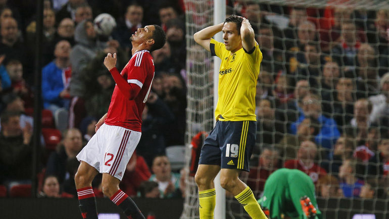 Англия. Кубок лиги. 1/8 финала. "Манчестер Юнайтед" – "Мидлсбро" – 0:0 д.в. Пенальти – 1:3. Голы: Лидбиттер, 121+1 – с пенальти (0:1). Перейра, 121+4 – с пенальти (1:1). Даунинг, 121+5 – с пенальти (1:2). Гибсон, 121+7 – с пенальти (1:3). Фото AFP, REUTERS