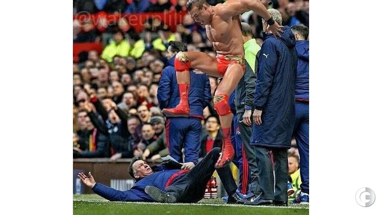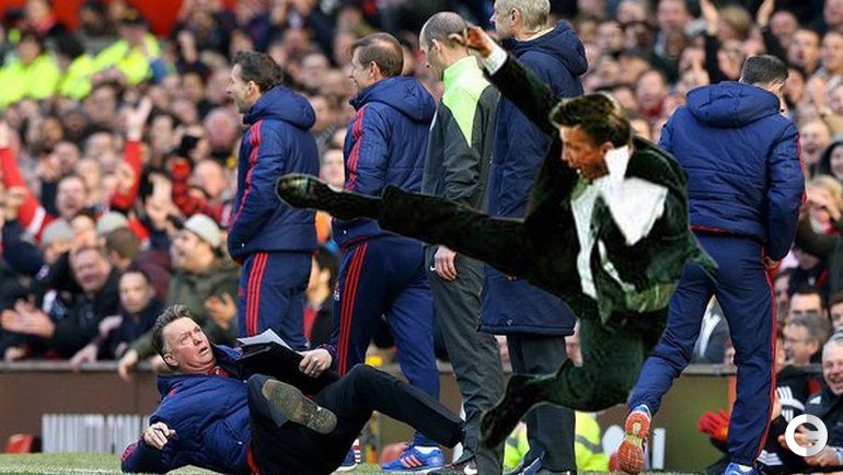 "СЭ" собрал лучшие пародии на падение главного тренера "Манчестер Юнайтед" Луи ван Гала в матче 27-го тура английской премьер-лиги против "Арсенала" (3:2).