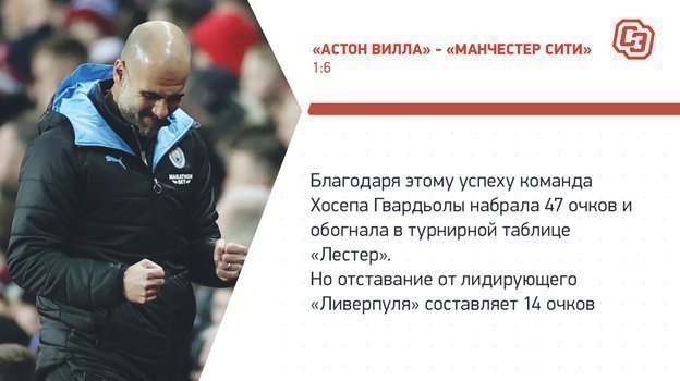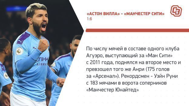 В матче 22-го тура чемпионата Англии «Манчестер Сити» на выезде разгромил «Астон Виллу» со счетом 6:1, а аргентинский форвард Серхио Агуэро оформил хет-трик и вошел в историю.