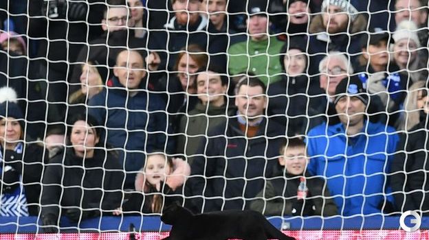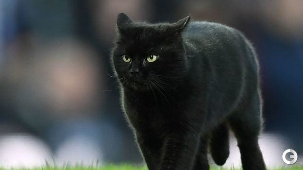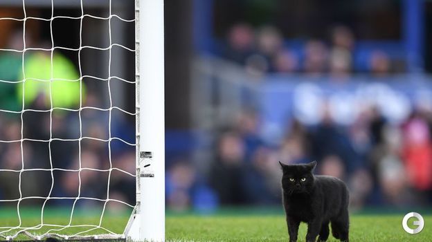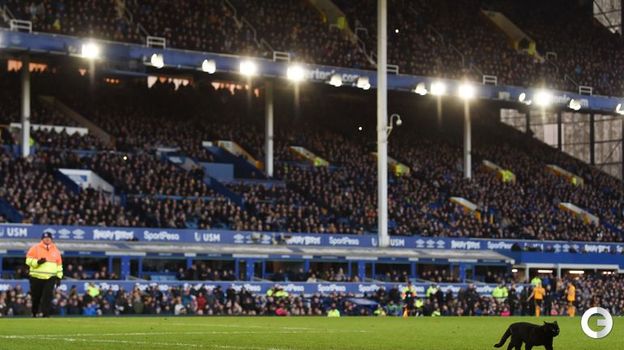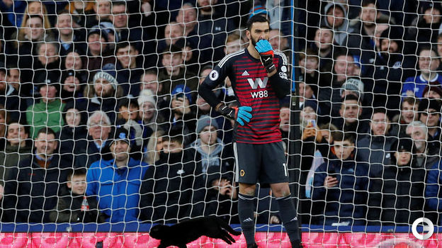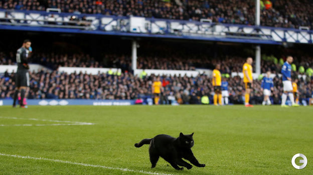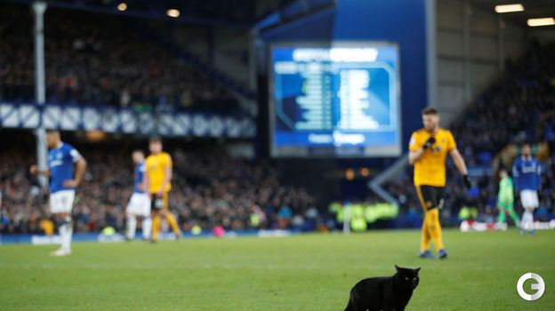 В матче 25-го тура чемпионата Англии между "Эвертоном" и "Вулверхэмптоном" (1:3) произошел забавный эпизод. На 68-й минуте встречи на поле выбежал черный кот. Игра была остановлена: сотрудники стадиона попытались поймать кота, однако тот убежал в подтрибунное помещение.