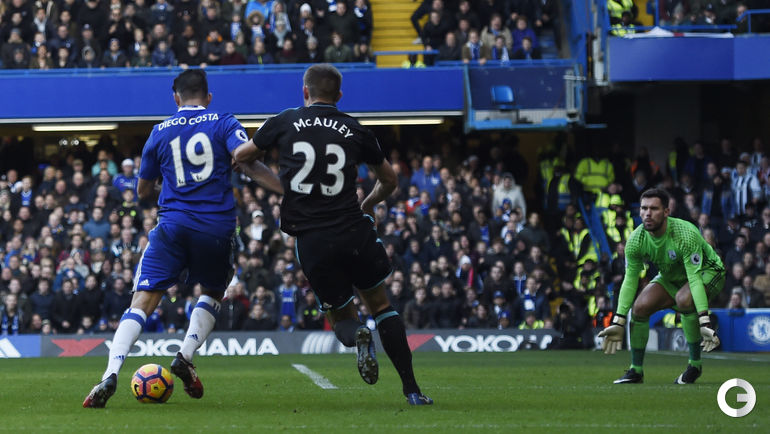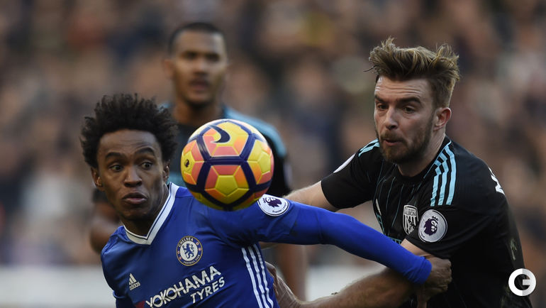 "Челси" в домашнем матче 15-го тура чемпионата Англии обыграл "Вест Бромвич" (1:0). Автором забитого мяча на 76-й минуте встречи стал нападающий "синих" Диегу Коста, поразивший дальний угол ворот Бена Фостера.