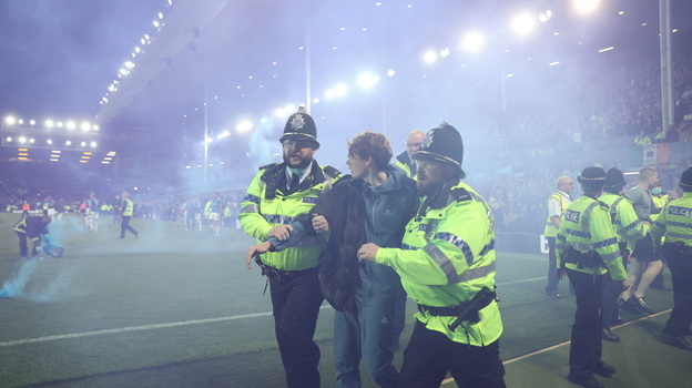 Тысячи местных фанатов прорвались на поле, чтобы отпраздновать это событие вместе с футболистами, но не обошлось и без неприятностей. Один из болельщиков показал средний палец тренеру гостей Патрику Виейра, который не сдержался и бросился наказывать провокатора с помощью рук и ног. В инциденте теперь разбирается полиция Ливерпуля.