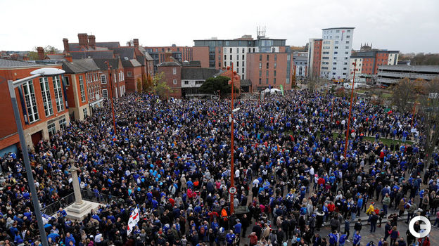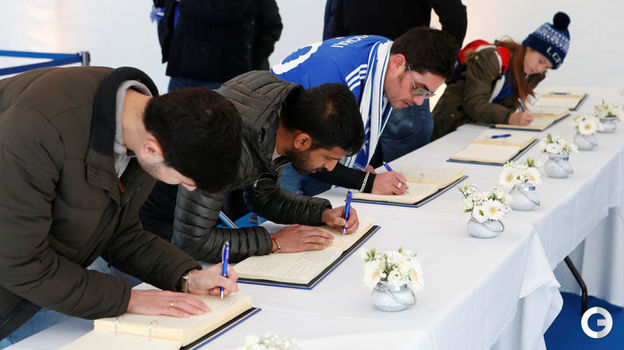 Болельщики "Лестера" вместе с игроками команды прошли маршем от центра города до стадиона "Кинг Пауэр". Тем самым они почтили память погибшего владельца клуба Вишая Шриваддханапрабхи. Возле стадиона участники марша возложили цветы. Произошло это в самой близости к тому месту, где рухнул вертолет бизнесмена. Перед матчем чемпионата с "Бернли" в Лестере было много трогательных моментов. Главное видео - здесь.