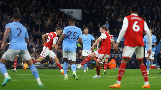 В матче лидеров английской премьер-лиги «Манчестер Сити» на своем поле обыграл «Арсенал» — 4:1.