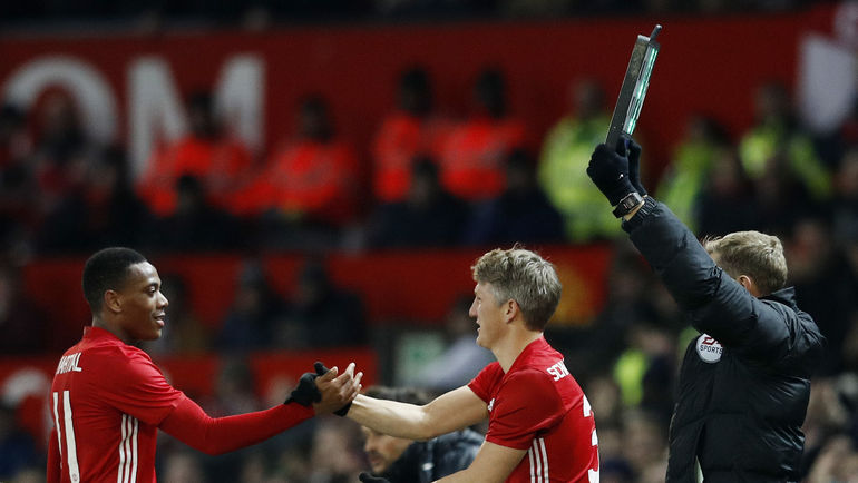 "Манчестер Юнайтед" на своем поле в матче 1/4 финала Кубка лиги победил "Вест Хэм" (4:1). В концовке встречи на замену вышел полузащитник Бастиан Швайнштайгер, для которого эта встреча стала первой в сезоне за команду. Отметим, что главный тренер "МЮ" Жозе Моуринью, который перед началом сезона перевел 32-летнего немца в дубль, был дисквалифицирован на эту игру, и Швайнштайгера на поле выпускал помощник Моуринью Руи Фариа.