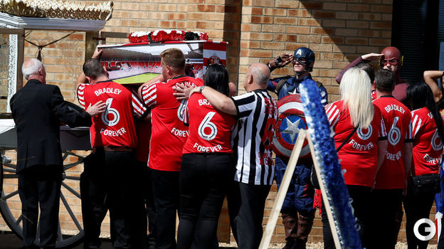 В Англии прошли похороны шестилетнего болельщика "Сандерленда" Брэдли Лоуэри, который страдал от нейробластомы. На церемонии прощания присутсвовал нападающий "Борнмута" Джермейн Дефо и бывший тренер "Сандерленда" Дэвид Мойес.