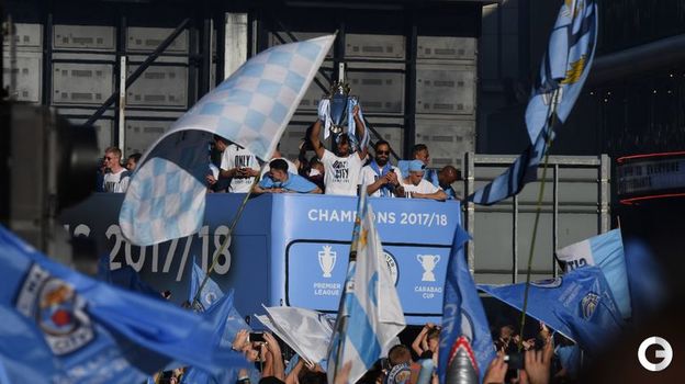 "Манчестер Сити" отпраздновал победу в чемпионате Англии сезона-2017/18. Команда на клубном автобусе проехалась по улицам Манчестера, где ее приветствовали и поздравляли более ста тысяч человек.