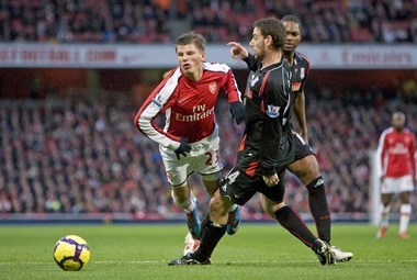 После крупного поражения в предыдущем туре в принципиальном матче против "Челси" футболисты "Арсенала" вышли на поле "Эмирэйтс" с твердым желанием реабилитироваться перед собственными болельщиками. Середнячок премьер-лиги "Стоук Сити" вполне для этого подходил. "Канониры" со стартовым свистком завладели территориальным преимуществом и приступили к планомерной осаде ворот Серенсена. Первые минут 10 - 15 гости противились хозяйской воле, линия обороны старалась плотно играть с Аршавиным, Насри и Фабрегасом. А когда не поспевали с перехватами и подкатами, на подмогу приходил голкипер: на 6-й минуте Серенсен отразил мощный удар из пределов штрафной в исполнении Насри. Тем не менее было очевидно: гол подопечных Венгера - лишь дело времени. При этом не покидало ощущение, что забьет непременно Аршавин, который начал встречу сверхактивно. На 20-й минуте россиянин заработал пенальти: он на ложном замахе убрал опекуна, прокинул мяч в штрафную, где был сбит не успевшим на подстраховку Делапом. К 11-метровой отметке подошел Фабрегас, но пробил как-то бесхитростно. Да и Серенсен действовал выше всяких похвал: датчанин не стал гадать, а сыграл по удару.