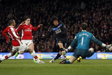 Лучше бы они этого не делали! Заведенный Нани выдал такой шедевр, который вполне может претендовать на звание лучшего гола сезона. Прижатый к бровке парой Клиши - Насри, форвард исхитрился одним изящным движением обыграть обоих. Потом ушел к лицевой линии от обозначившего борьбу Вермалена и оттуда пустил эффектный "парашютик" над Альмунией. Голкипер пытался отвести мяч и от ворот, и от набегавшего на дальнюю штангу Пак Чжи Суна, но только помог ему залететь в цель.