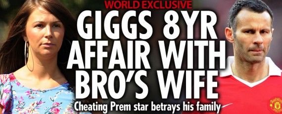 В 2011 году Райан Гиггз стал звездой заголовков самых желтых газет Великобритании: прессе стало известно о любовных отношениях легендарного манкунианца с женой… собственного брата Родри. Роман с Наташей Гиггз длился около восьми лет. По утверждению таблоидов, они часто встречались во время беременности супруги игрока Стейси.