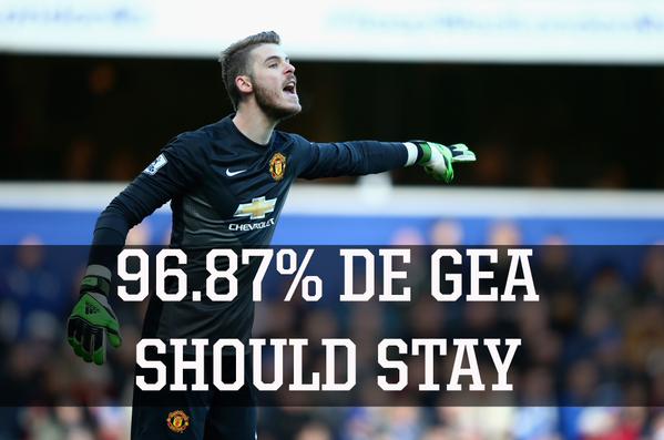 Колоссальную поддержку получил Давид де Хеа. 96,87 процента считают, что его контракт должен быть продлен. А вот мнение болельщиков о перспективах Радамеля Фалькао и Робина ван Перси вовсе не такое оптимистичное. Всего лишь 33 процента фанатов готовы предложить новое соглашение колумбийскому форварду, а 45,67 предлагают подождать до конца сезона. 21,33 процента считают, что выкупать Фалькао у "Монако" не нужно.