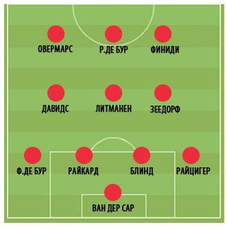 Схема "Аякса" при ван Гале образца 1995 года в матче Лиги чемпионов с "Миланом"