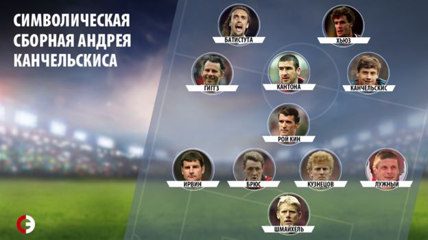Петер Шмайхель – Олег Лужный, Олег Кузнецов, Стив Брюс, Денис Ирвин – Рой Кин – Андрей Канчельскис, Эрик Кантона, Райан Гиггз – Марк Хьюз, Габриэль Батистута.