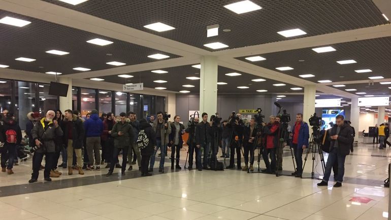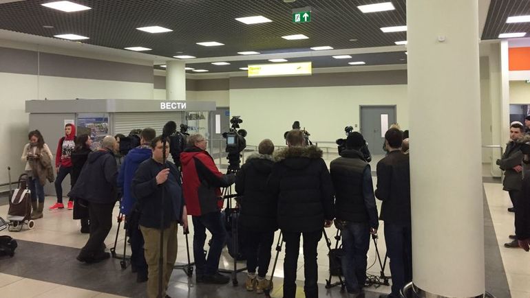 ОБНОВЛЕНИЕ от 2.12. Двое фанатов показались из зоны таможенного досмотра, но были вновь уведены сотрудником аэропорта.