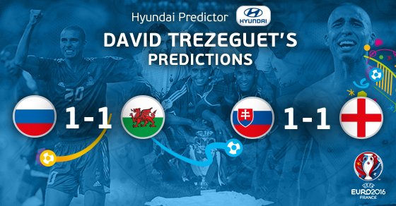 Бывший нападающий сборной Франции Давид Трезеге считает, что сегодняшние матчи группы B чемпионата Европы-2016 Россия – Уэльс и Словакия – Англия завершатся со счетом 1:1. Если его прогноз сбудется, подопечные Леонида Слуцкого займут последнее место в группе и не пробьются в плей-офф Euro. Первое место в группе сохранит Англия, второе – Уэльс, а Словакия станет третьей и будет ждать результатов матчей в остальных группах.