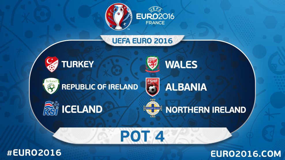 В принципе жеребьевка уже прошла. Вот ее результаты:\\\\\\\\\\\\\\\\\\\\ Гр.А/ Франция, Украина, Чехия, Исландия//// Гр.В/ Испания, Швейцария, Венгрия, Уэльс//// Гр.С/ Германия, Австрия, Швеция, Ирландия///// Гр.Д/ Англия ,Россия, Словакия, Албания///// Гр.Е/ Бельгия, Италия, Румыния, С.Ирландия///// Гр.Ф/ Португалия, Хорватия, Польша, Турция/////