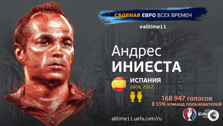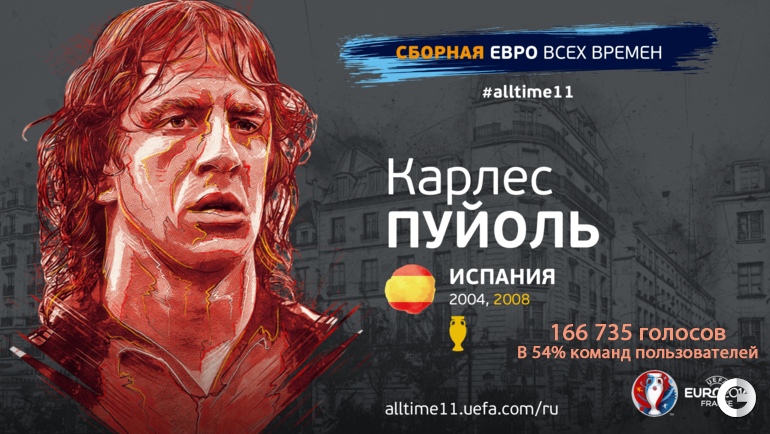 На официальном сайте УЕФА завершилось голосование среди болельщиков, которые выбирали символическую сборную Euro всех времен. Респондентам было предложено выбрать стартовый состав из 50 выделенных по специальным критериям кандидатов (в числе номинантов присутствовали два советских футболиста - вратарь Лев Яшин и нападающий Валентин Иванов).