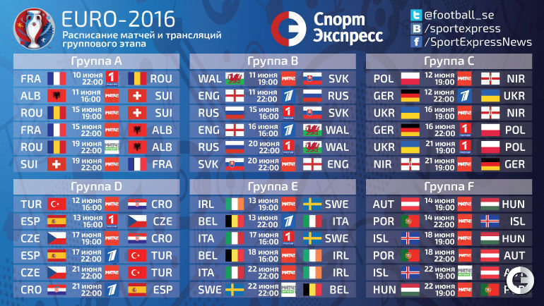 Матчи чемпионата Европы-2016 в России показывают сразу на трех федеральных каналах (Первый, "Россия 1" и "Матч ТВ"). Все – в прямом эфире.
