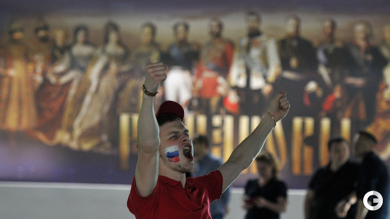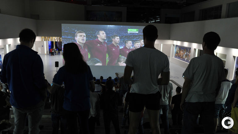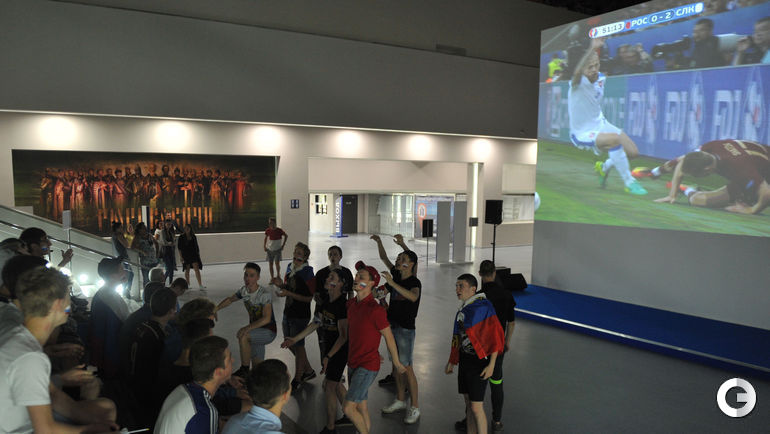 Трансляция матча чемпионата Европы между сборными России и Словакии в историческом парке "Россиия - моя история" на ВДНХ.