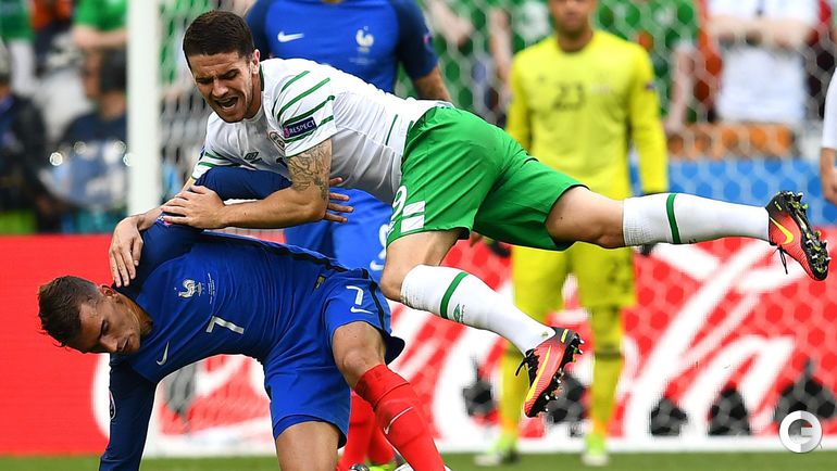 Сборная Франции добилась волевой победы над Ирландией (2:1) в 1/8 финала Euro-2016. Хозяева открыли счет уже на третьей минуте – Роберт Брэйди реализовал пенальти, назначенный за фол Поля Погба на Шейне Лонге. Но после перерыва дубль Антуана Гризманна вывел хозяев в следующий раунд. Концовку встречи ирландцы провели в меньшинстве из-за удаления Шейна Даффи.