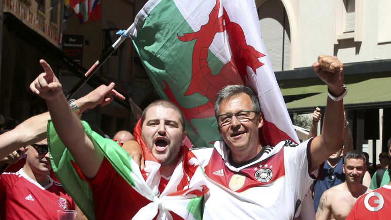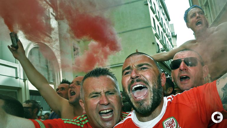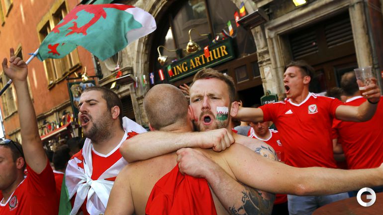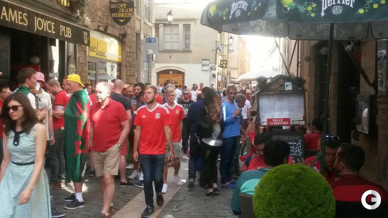 Валлийские болельщики в Лионе перед матчем с Португалией