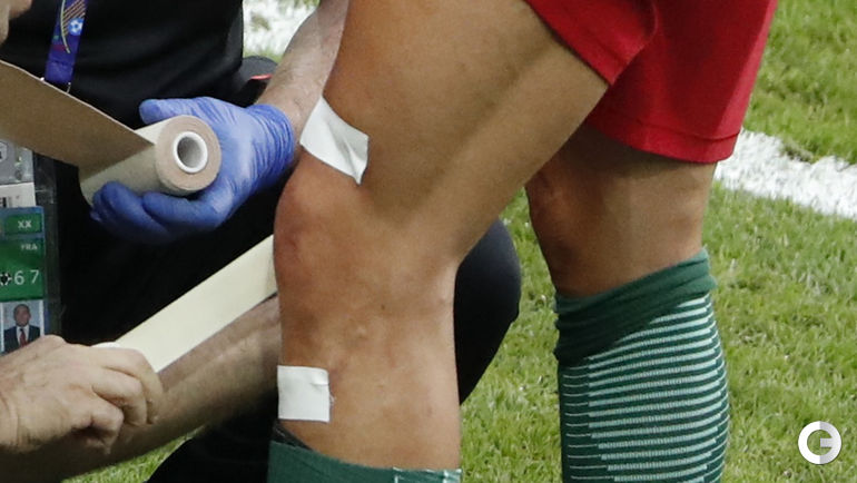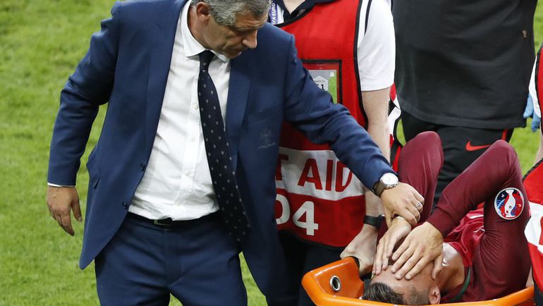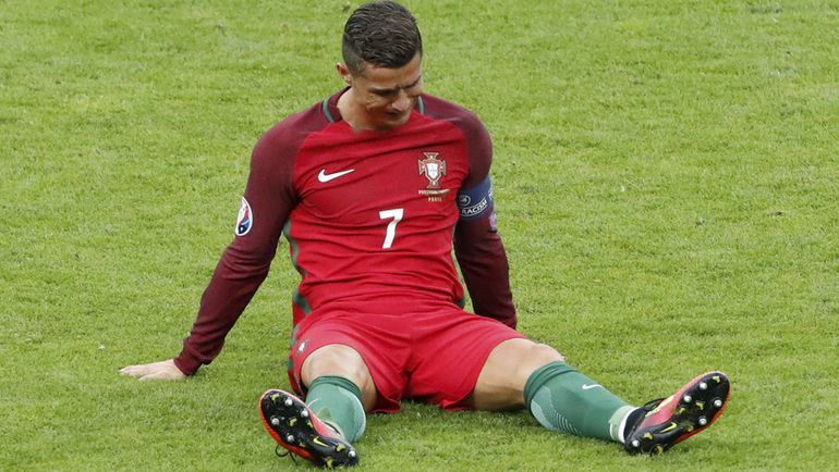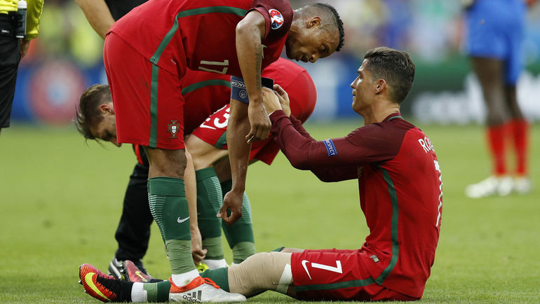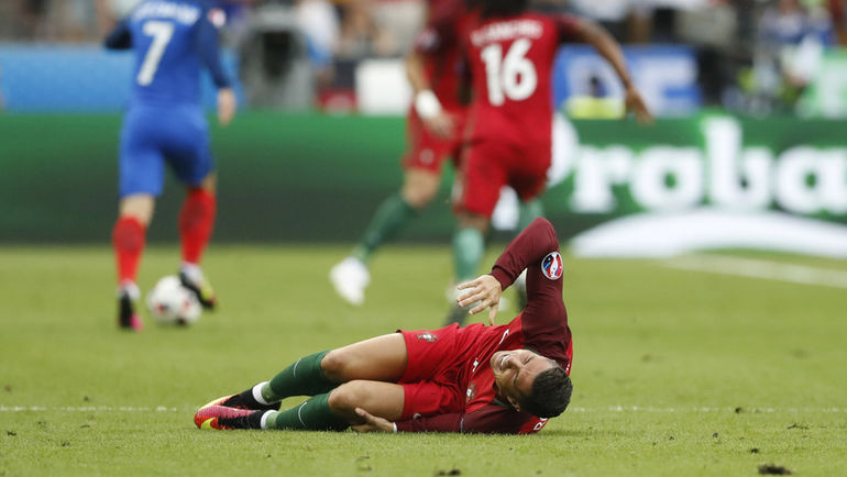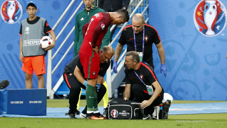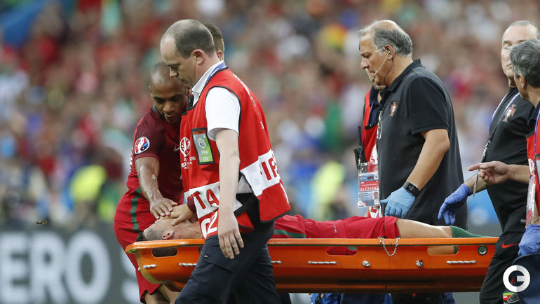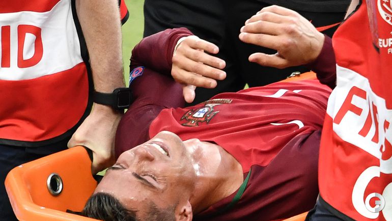 Капитан сборной Португалии Криштиану Роналду получил повреждение в финальном матче чемпионата Европы-2016 с Францией в столкновении с нападающим соперника Димитри Пайетом на 8-й минуте. 31-летний форвард вернулся в игру, но на 18-й минуте врачи вновь появились на поле. На глазах футболиста появились слезы, однако игрок продолжил встречу с перебинтованым левым коленом. Спустя некоторое время Роналду попросил замену - на 25-й минуте.