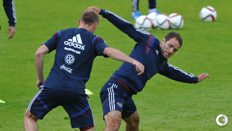 Тренировка сборной России перед игрой с Австрией