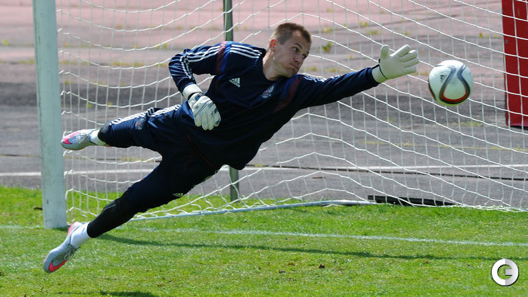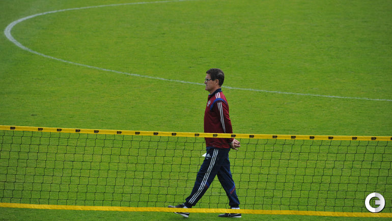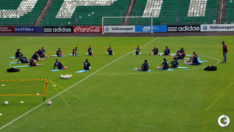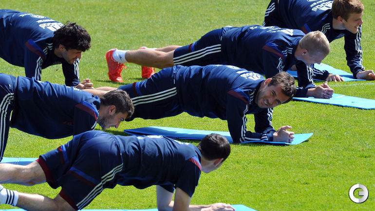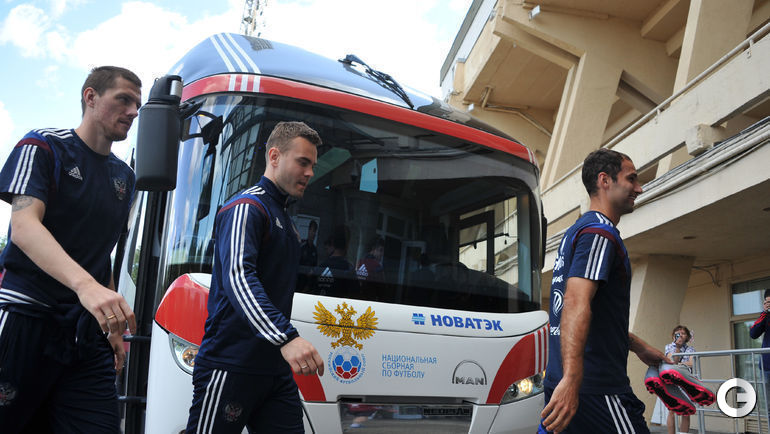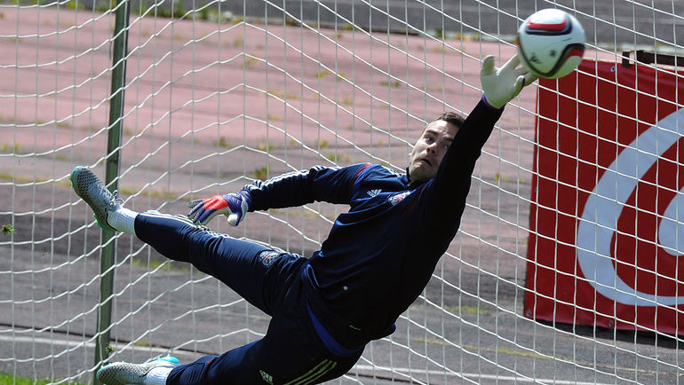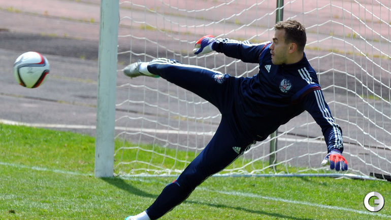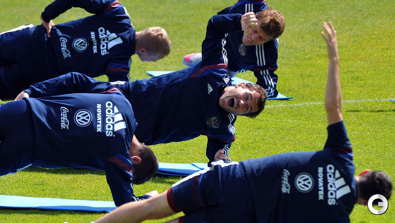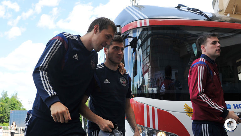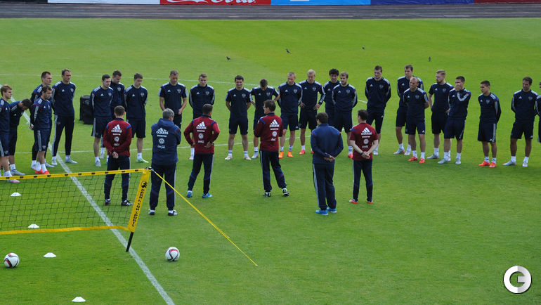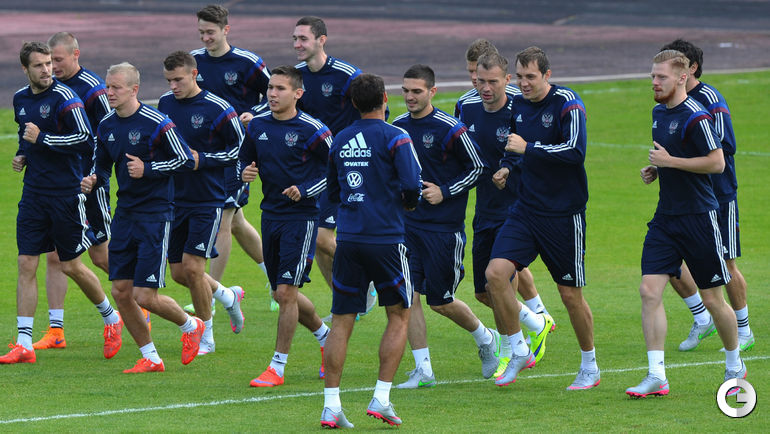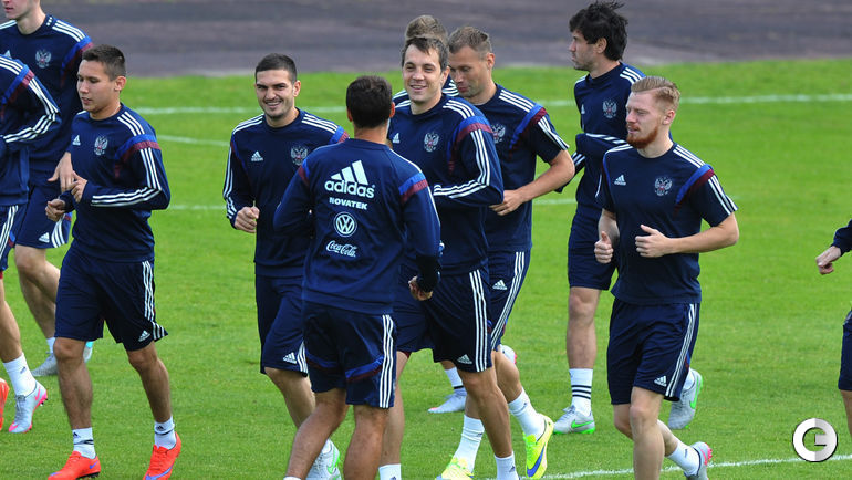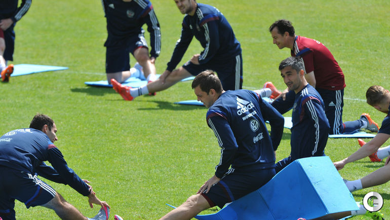 Москва. Сборная России по футболу провела тренировку на стадионе имени Стрельцова в преддверии отборочного матча Euro-2016 с Австрией. Вновь пропускал занятия из-за недомогания центральный защитник Сергей Игнашевич. Фото Александр ФЕДОРОВ, "СЭ"