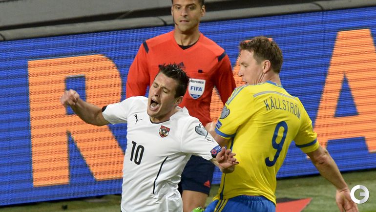 Сборная Австрии, лидер группы G, в гостевом матче отборочного турнира Euro-2016 разгромила Швецию со счетом 4:1. Это победа обеспечила австрийцам путевку на чемпионат Европы, который пройдет во Франции. Кроме того, она позволила сборной России, которая разгромила Лихтенштейн, обойти шведов и выйти на второе место в группе G, которое гарантирует прямой выход на Euro-2016. Фото AFP и REUTERS