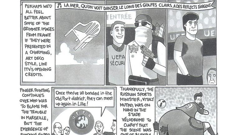 Первые дни чемпионата Европы были обезображены неприятными инцидентами. Но мы все могли бы чувствовать себя лучше, если бы мрачные картинки из Франции были представлены в очаровательном стиле арт-деко. До сих пор неясно, кто виноват в произошедшем в Марселе, но появление шокирующих кадров, на которых массовая драка снята на экшн-камеру, косвенно подтверждает, что беспорядки были тщательно спланированы.