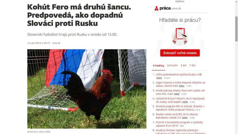 SME: ПЕТУХ ФЕРО ПРЕДСКАЗАЛ ПОБЕДУ РОССИИ