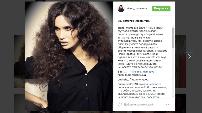 Удаленная запись Аланы Мамаевой. Фото instagram.com
