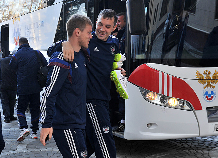23 марта 2015 года. Новогорск. Александр КОКОРИН и Артем ДЗЮБА подходят к матчу с Черногорией в хорошем настроении. Фото Александр ФЕДОРОВ, "СЭ"