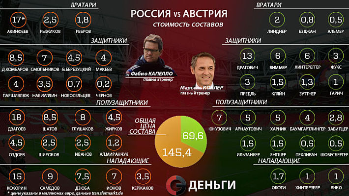 Сборная России не знает поражений в 2015 году. После технической победы над Черногорией подопечные Фабио Капелло сыграли вничью в товарищеской встрече с Казахстаном (0:0) и победили Белоруссию (4:2). Последним россиянином, забивавшим в ворота австрийцев, является нынешний тренер сборной Игорь Симутенков. В 1994 году голом с пенальти форвард установил окончательный счет в товарищеском матче – 3:0. |