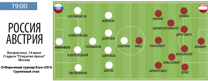 Алан ДЗАГОЕВ, полузащитник сборной России: – Австрия – хорошая команда, плотно играет в защите. Здорово выбегает в контратаки. Но если мы сыграем в свою игру, то, думаю, все получится. Нужно хорошо держать мяч. Не допускать разрывов между линиями. |