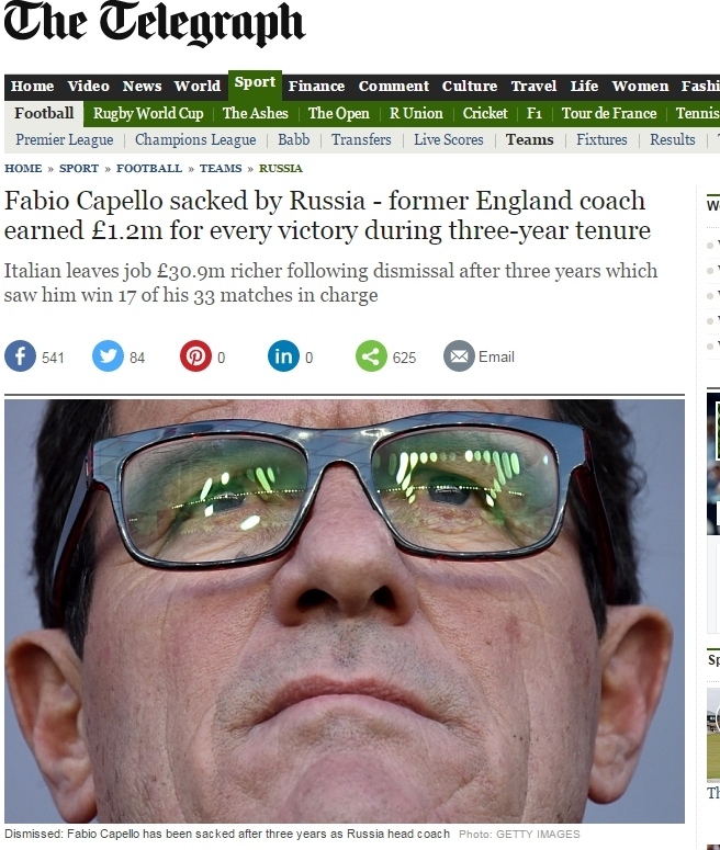 Капелло получал 1,2 миллиона фунтов за каждую победу. Обзор мировых СМИ