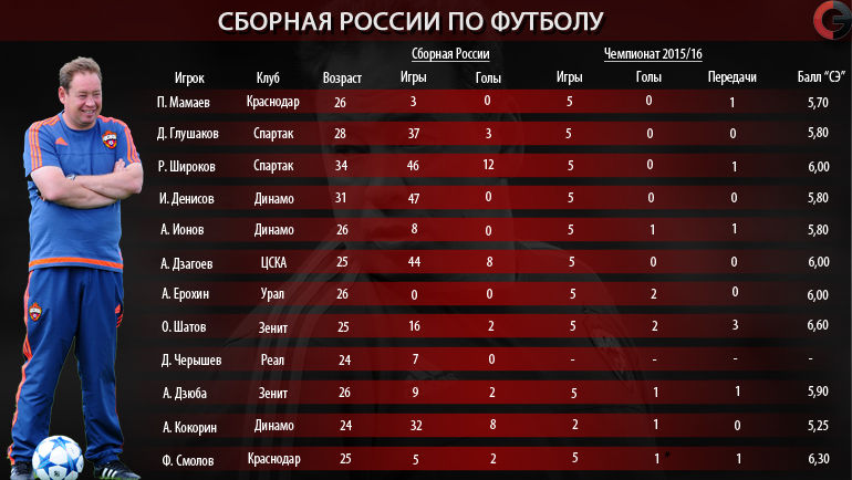 Я буду делать ставку на лучших на сегодняшний день игроков. А в моем понимании, лучшие игроки выступают в лучших командах страны. За рубежом у нас, по сути, только Черышев. И второе правило. В основном будут вызываться игроки, имеющие опыт выступления за национальную сборную и в еврокубках".